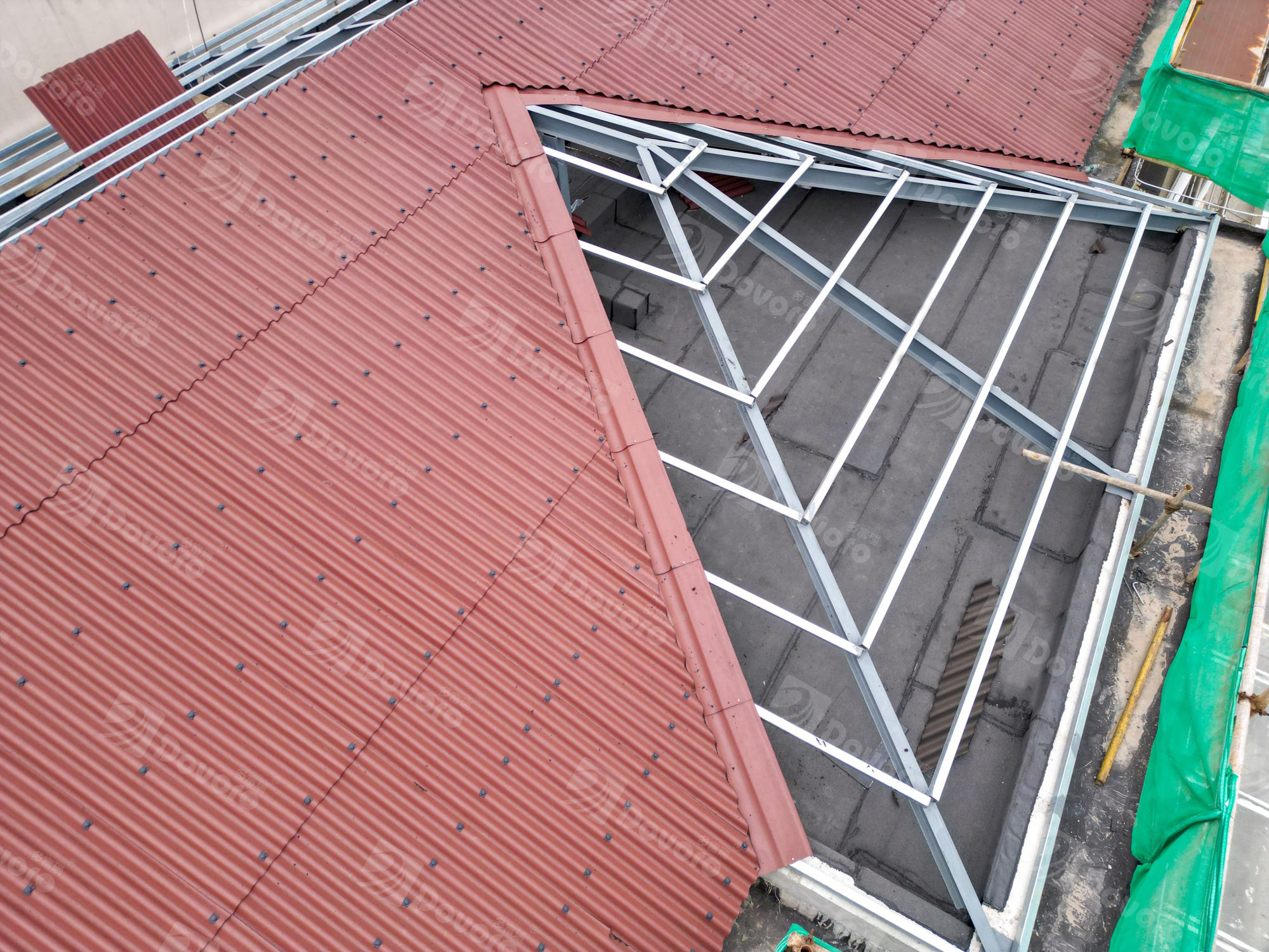 3、幻景波形沥青瓦多用于有檩体系屋面和普通民用建筑, 主要包括旧屋面翻新、平改坡、一般住宅、工业厂房、仓库和农村建筑。